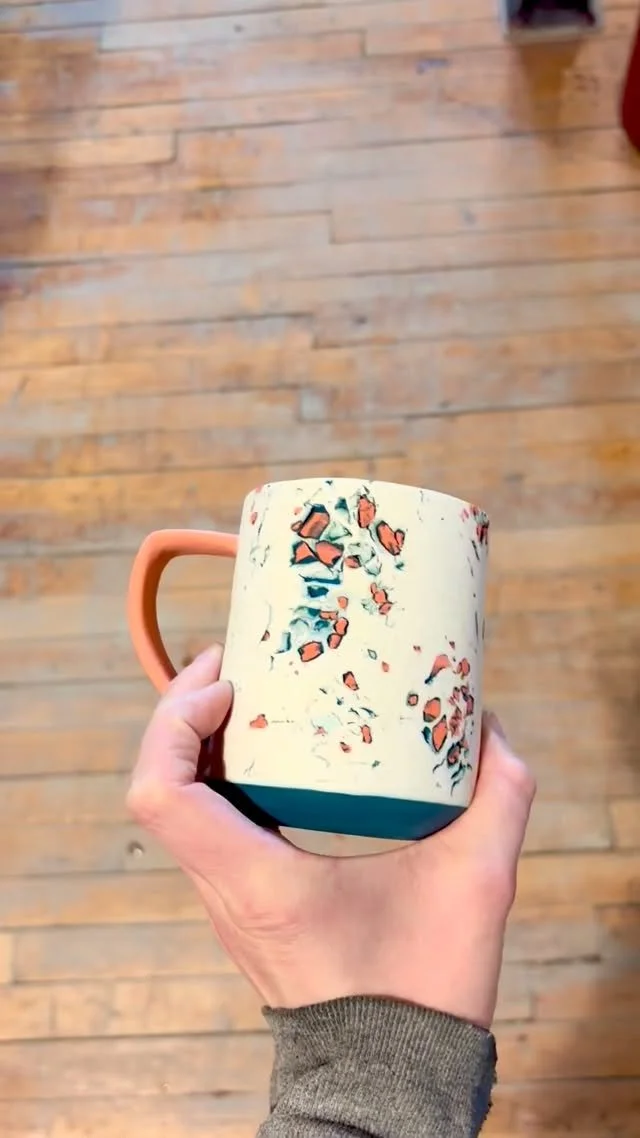 I have developed my signature style of marbled pottery by adding commercial stains into my clay bodies, and blending black and white porcelain together. Each piece is one hundred percent unique with no two marbling affects ever being the same. The exterior of each piece is unglazed, but has been sanded multiple times to create a soft, supple surface just waiting to be touched.